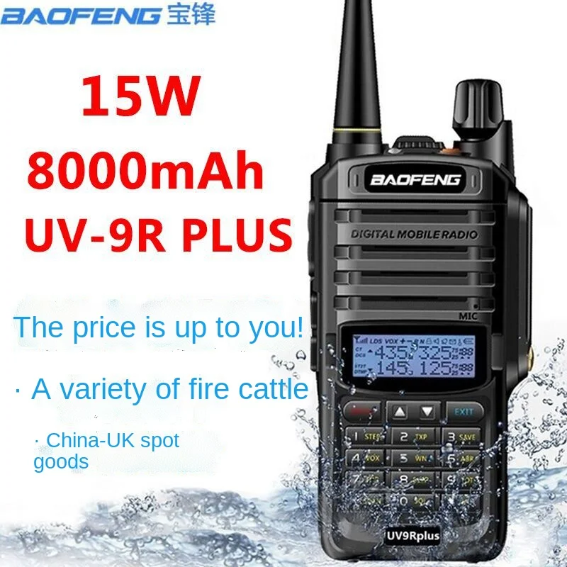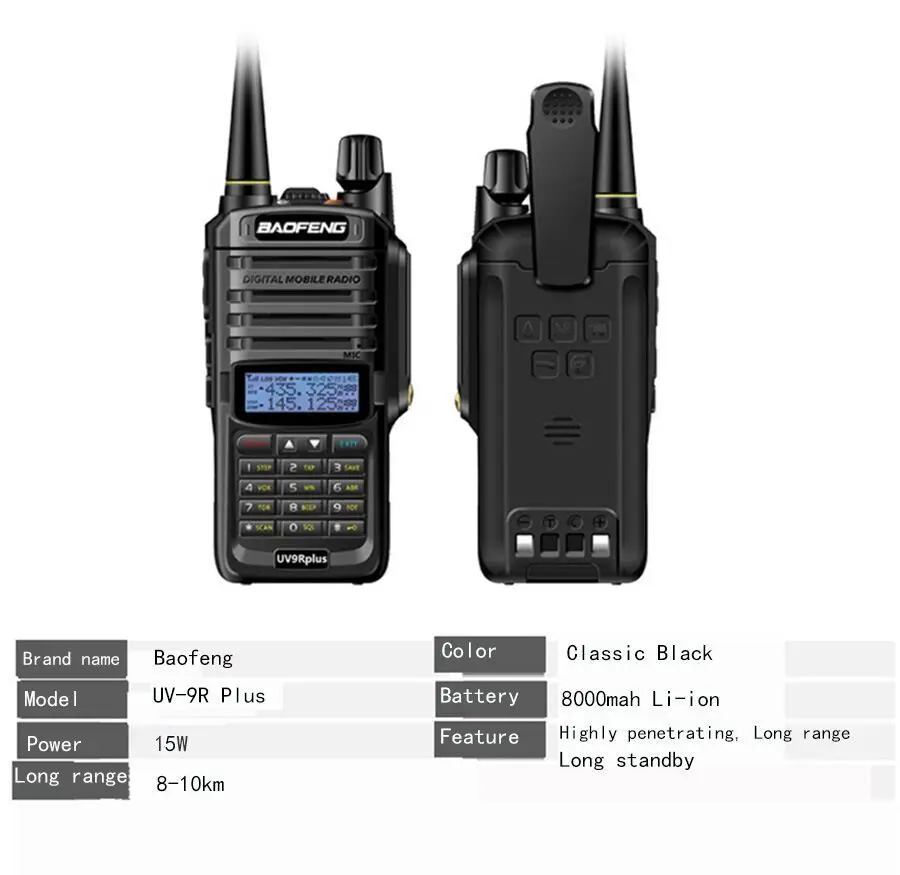Портативная рация Baofeng UV-9R Plus, водонепроницаемая, 15 Вт, высокомощная, двухступенчатая, УФ-защита, гражданская, морская, ручная рация для самостоятельного вождения
