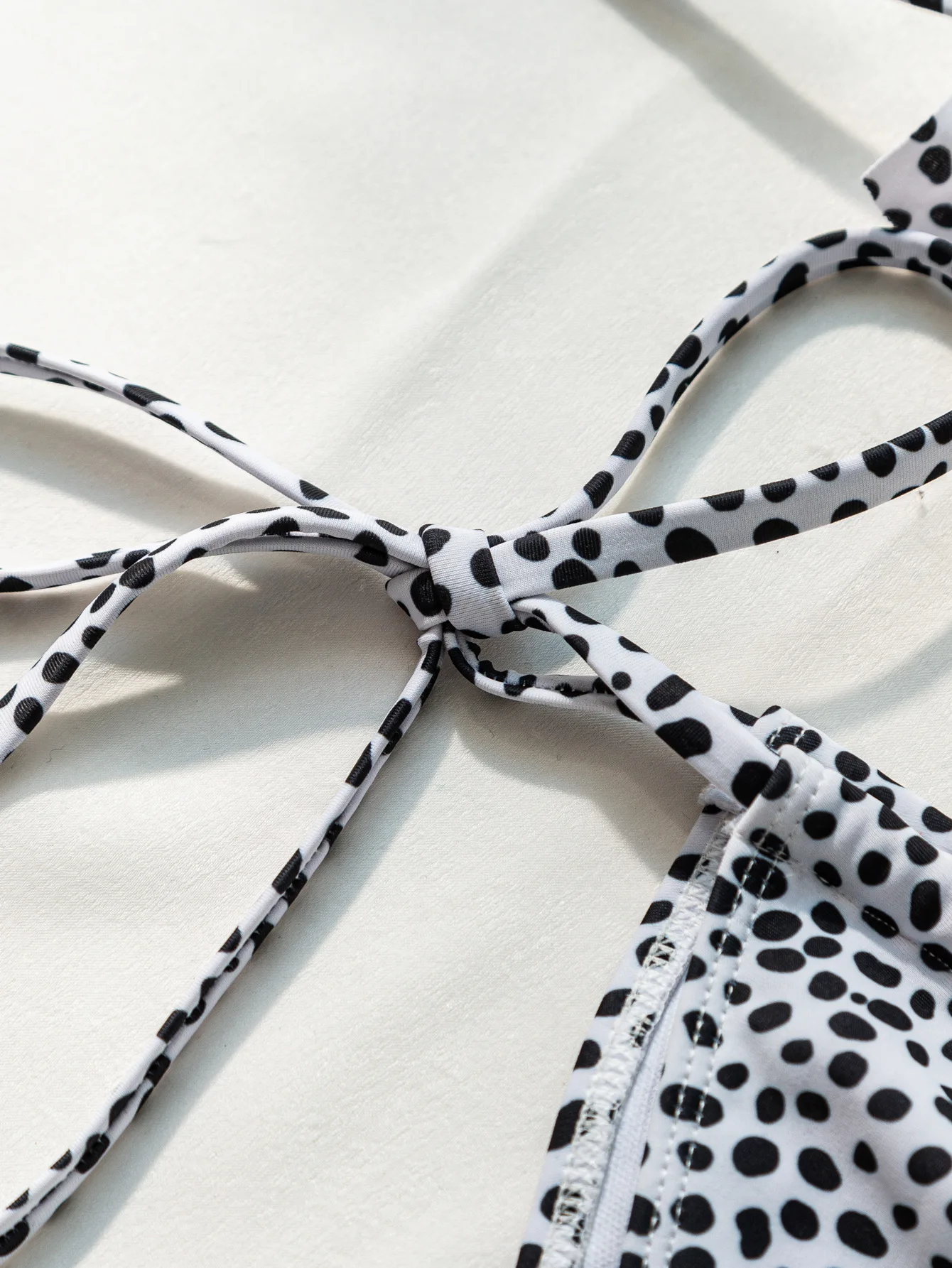 Бикини 2022, сексуальный купальник в горошек с рюшами, Женский бандажный купальник с лямкой на шее, комплект бикини, купальный костюм, Пляжное бикини, женский купальник