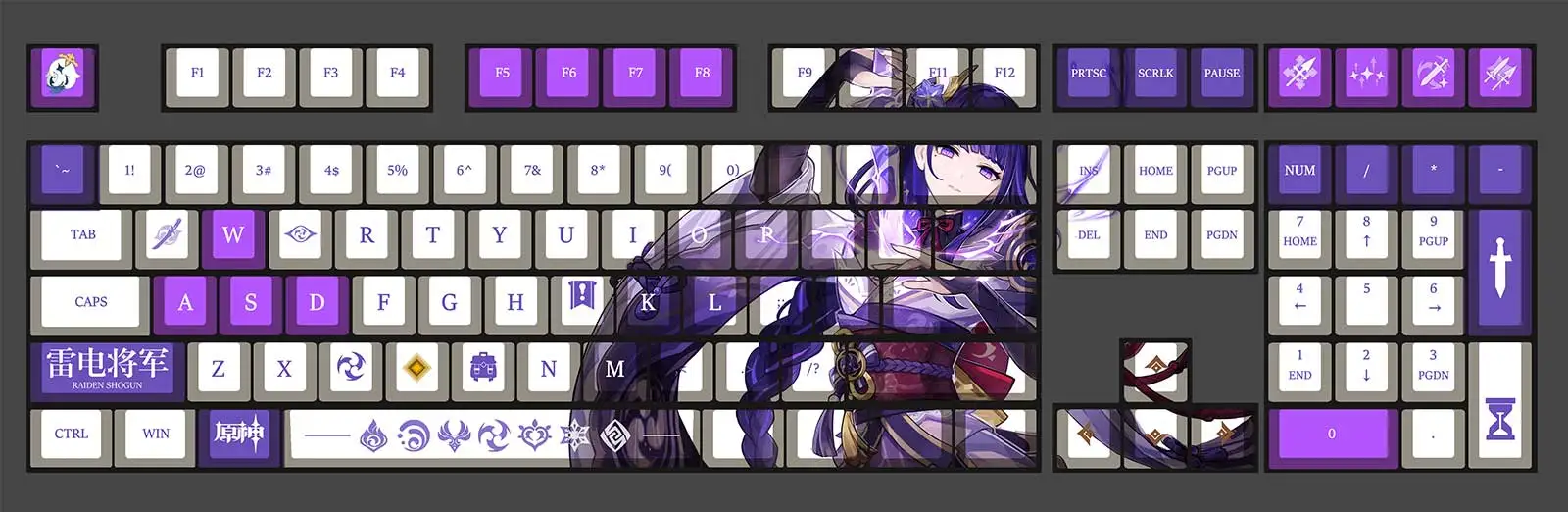 Genshin Impact тема RAIDEN SHOGUN Pbt Материал колпачки для клавиш ...