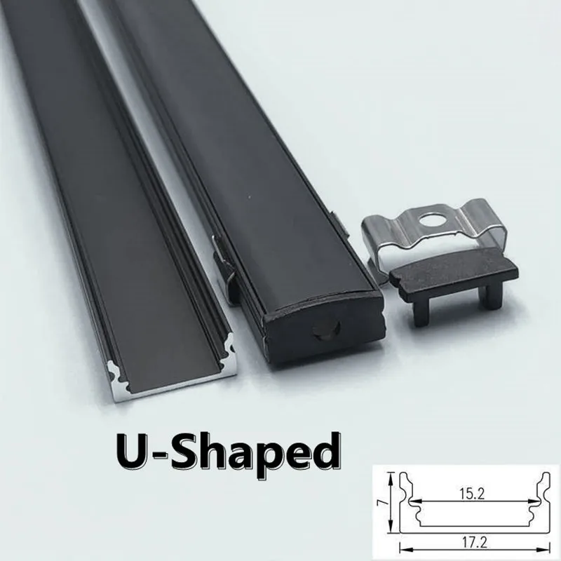 1-30шт., 0,5 м, черный U-образный светодиодный алюминиевый профиль для держателя канала 5050, 5630, линейная полоса для освещения шкафа с молочнымчерным покрытием