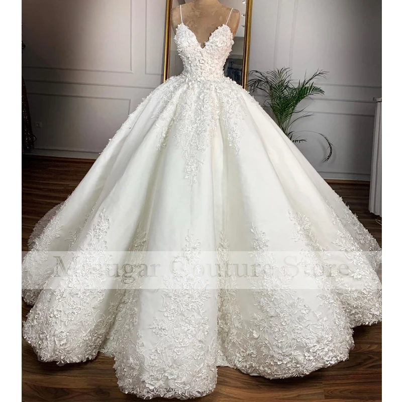 2022 винтажные кружевные свадебные платья Casamento 3D цветочные сексуальные V-образные шеи на бретелях Свадебные платья размера плюс