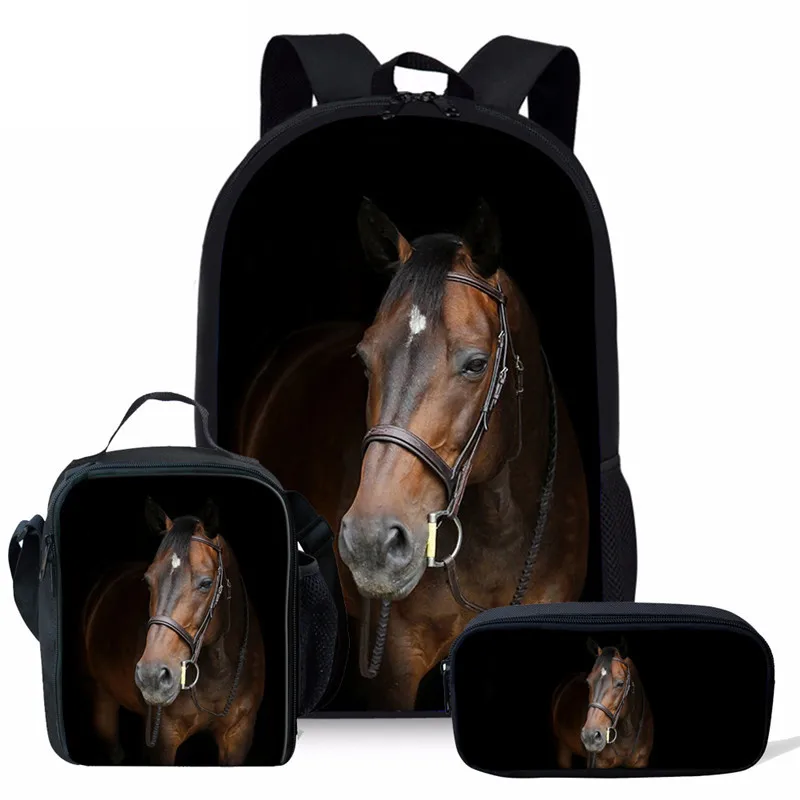 Style Name:Horse 3pcs Set 3D Backpacks bags