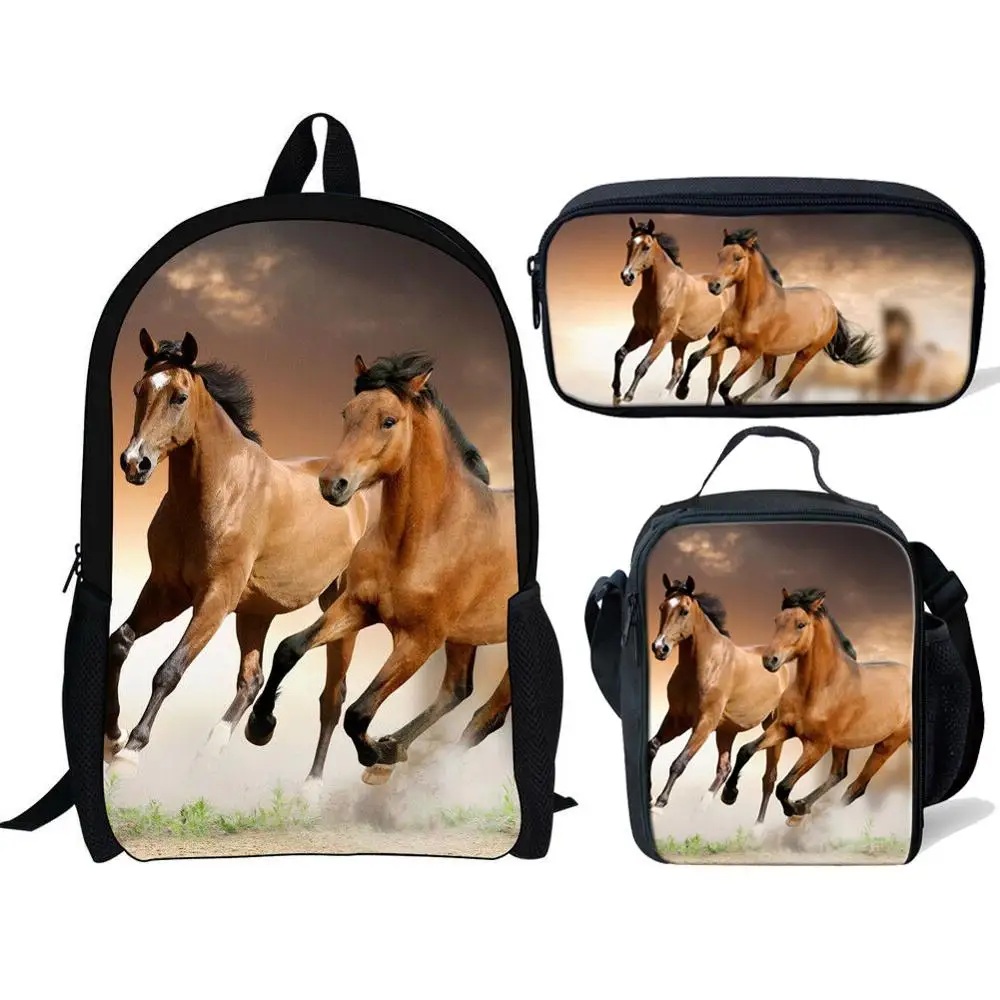 Школьный рюкзак Harajuku с 3D рисунком лошади, модный дорожный ранец для учеников, сумка на плечо, чехол-карандаш, 3 шт.компл.
