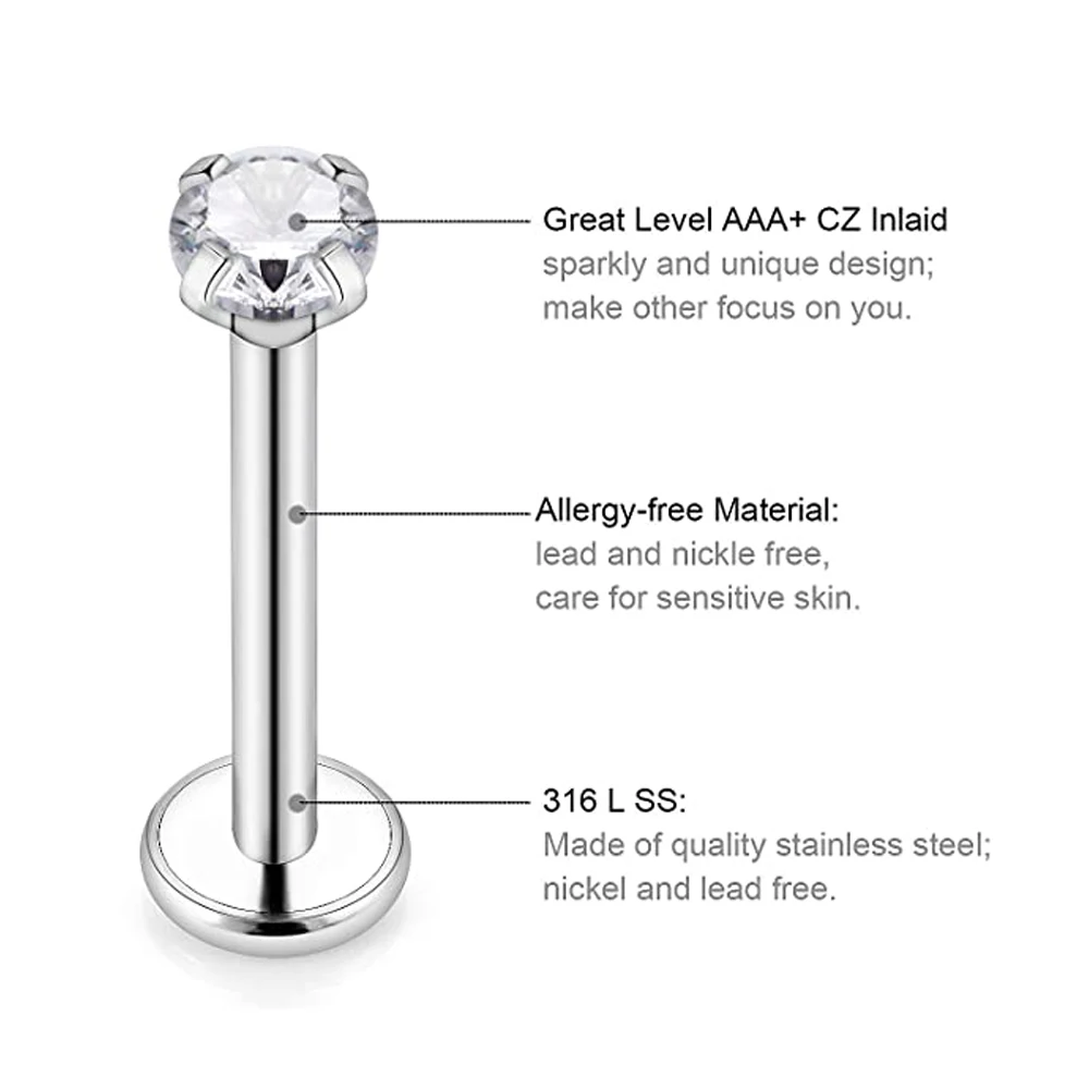 Серьга-гвоздик для пирсинга губ, ювелирное изделие из нержавеющей с...