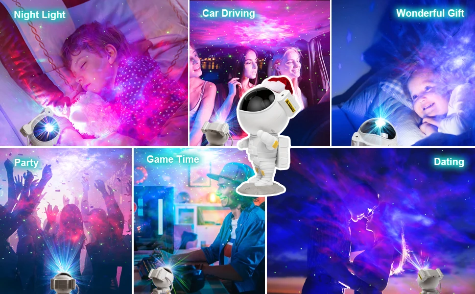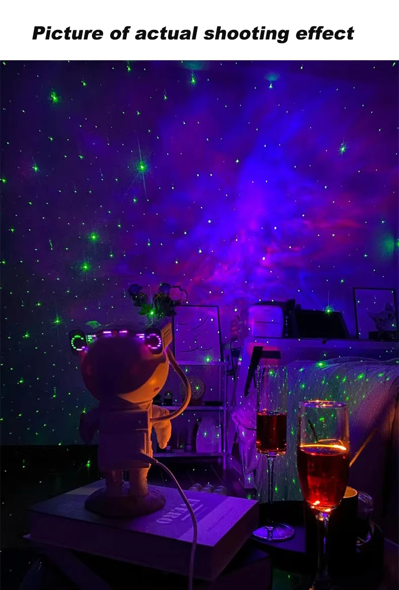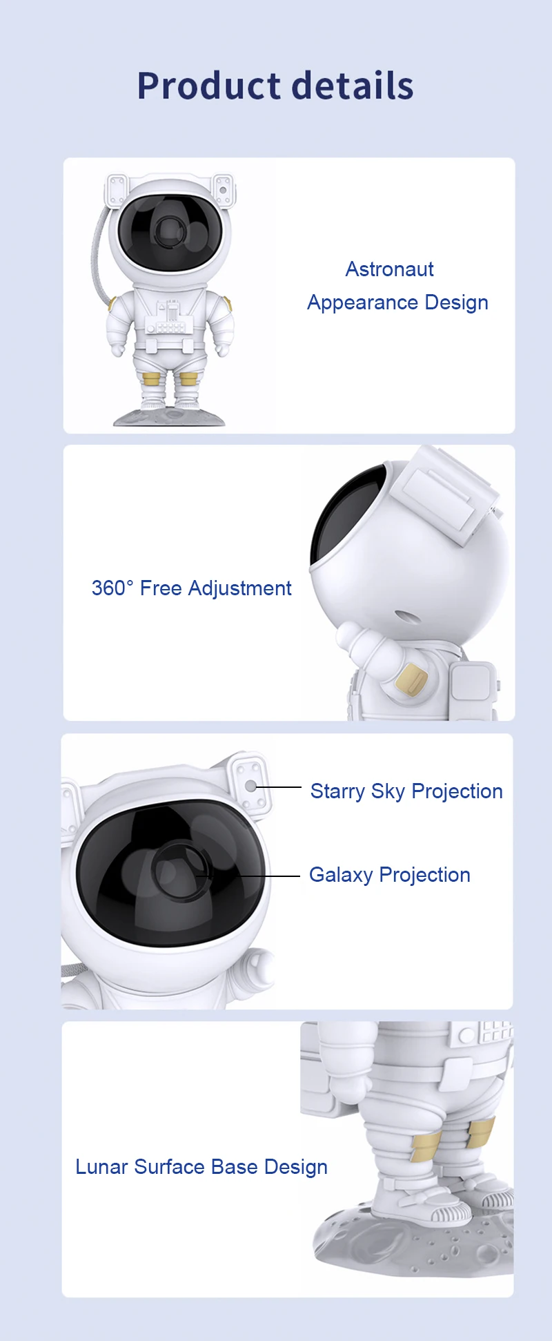⋆Astronaut дизайн⋆ Регулировка на 360 °Projection проекция звездного неба и проекция Галактики⋆Lunar поверхности базовый дизайн⋆Угол проекции может быть отрегулирован по желанию, который прост в использовании⋆Можно использовать как прожекторную лампу, но и как высококлассное украшение