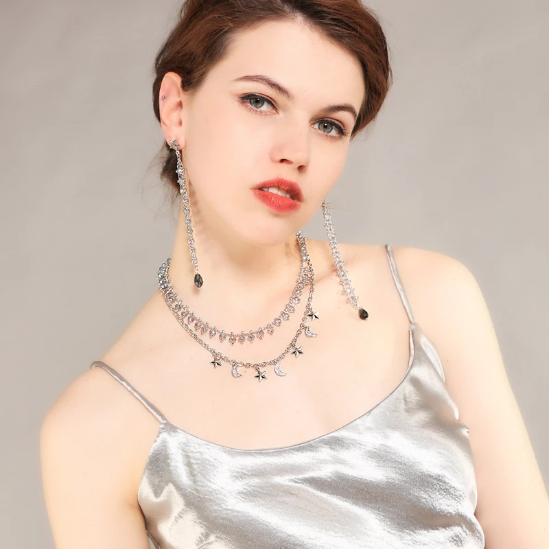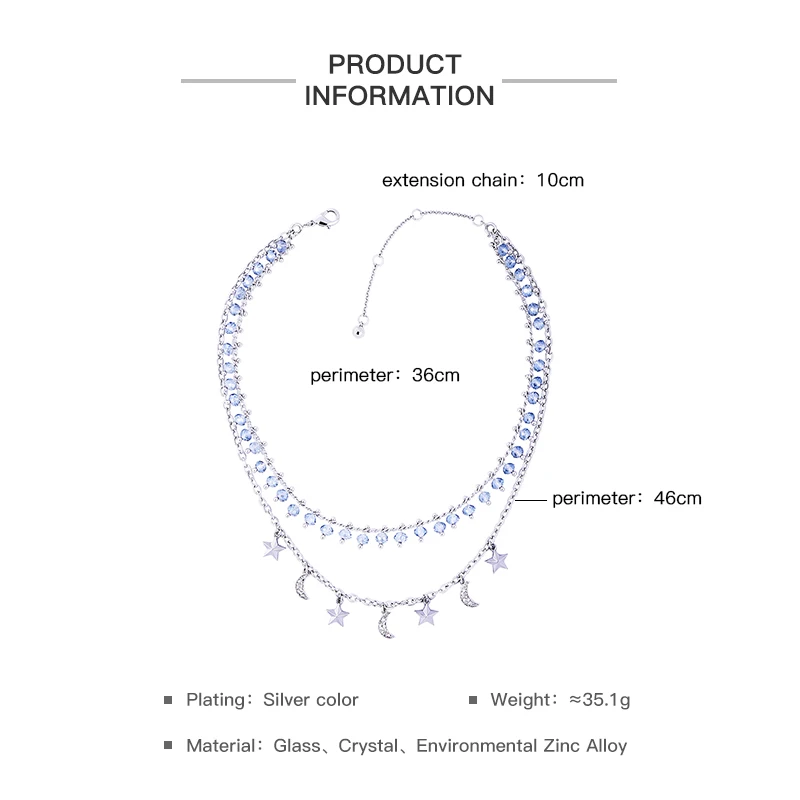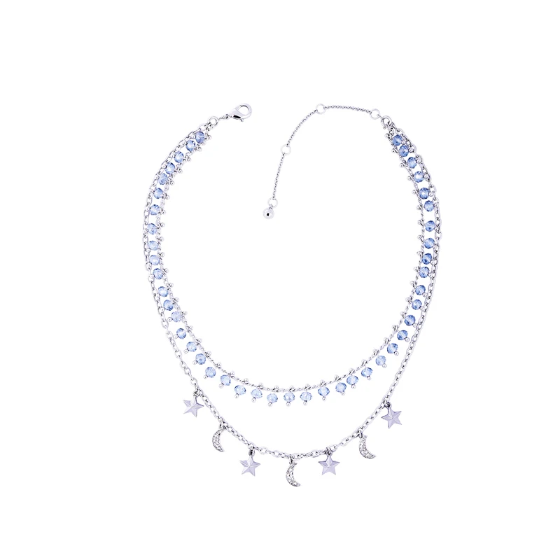 Ожерелье-чокер из металлического сплава с синими бусинами и звездами