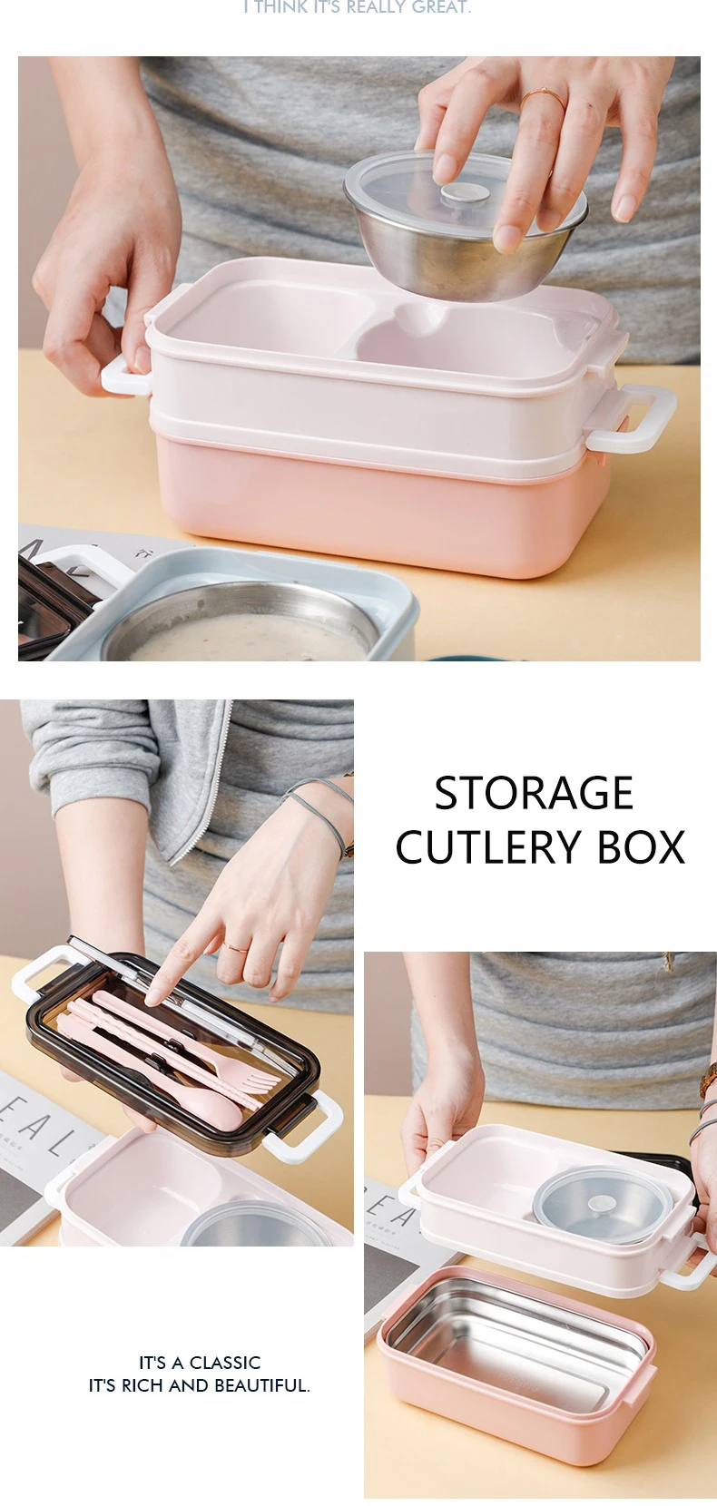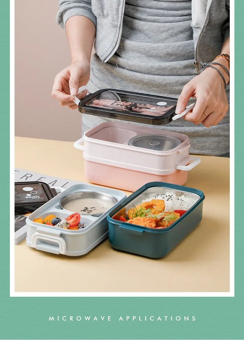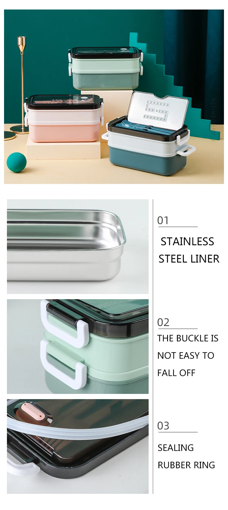 Новый Ланч-бокс Bento для студентов, офисных работников, двухслойны...