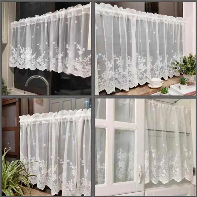Французская кружевная Короткая занавеска, газовая занавеска с вышивкой, полузанавеска для эркера, кухни, спальни, кабинета, Бесплатная Пробивка