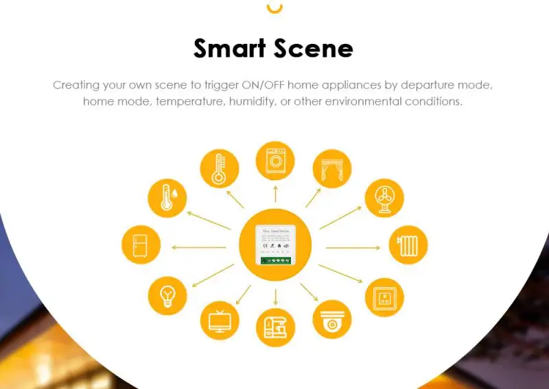 Через настройки, он может быть соединен с другими умными сценами, чтобы сделать жизнь умнее; Например, установите домашнюю сцену: автоматически Включите свет гостиной, телевизор и кондиционер.
