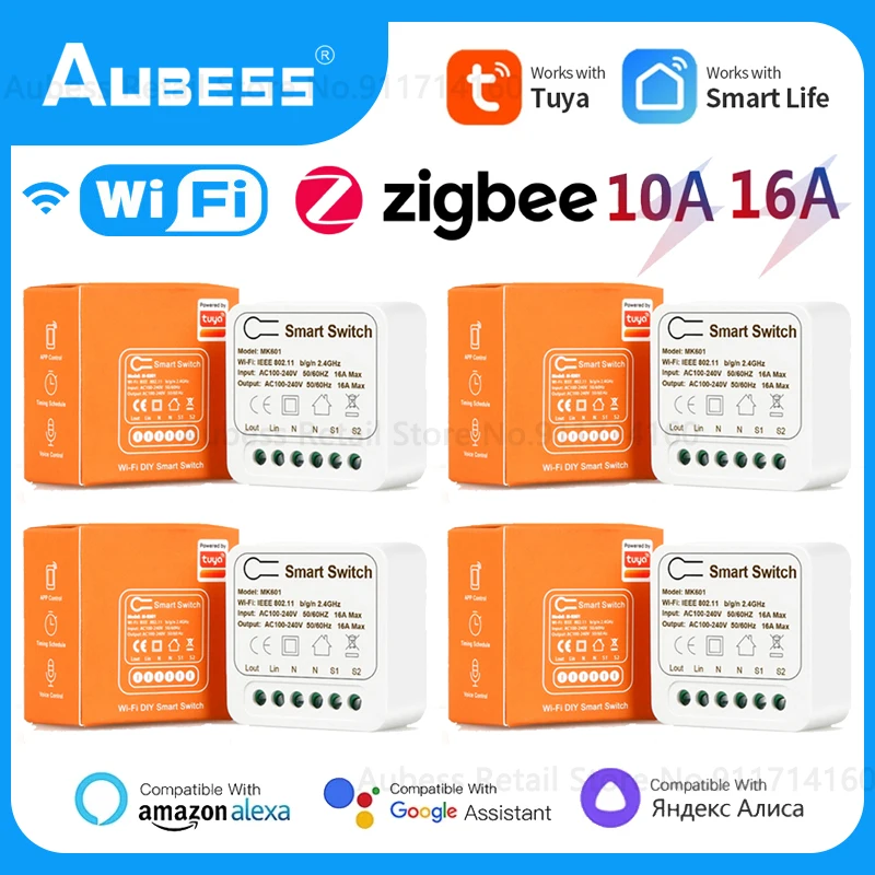 Умный светильник ель Aubess Tuya ZigBeeWi-Fi, двухсторонний модуль реле управления сделай сам, автоматизация дома, таймерный выключатель для Alexa Alice