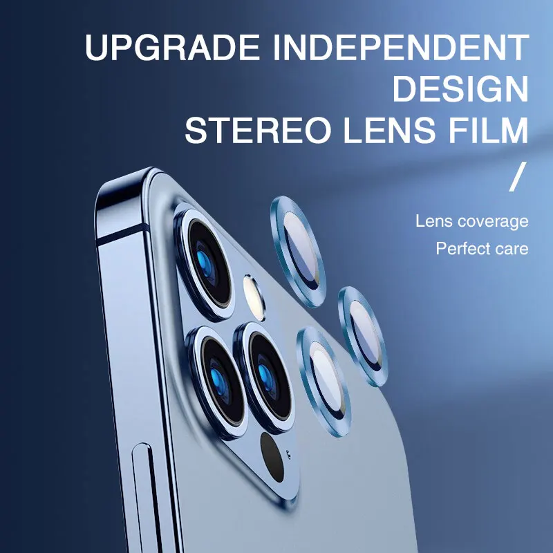 Защитная пленка для камеры на iPhone 13, 12, 11 Pro Max, 3 шт., полное покрытие, металлическое кольцо, закаленное стекло на iPhone 12, 13, Защитная пленка для мини-камеры