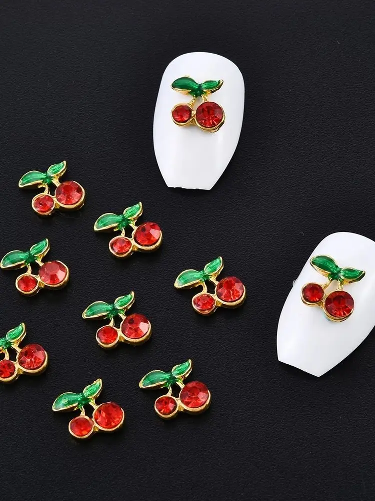 20 шт.B Милая вишня из сплава, подвески для ногтей, красная яркость, японский милый Cherilee, 3D украшения для дизайна ногтей, 8*8 мм