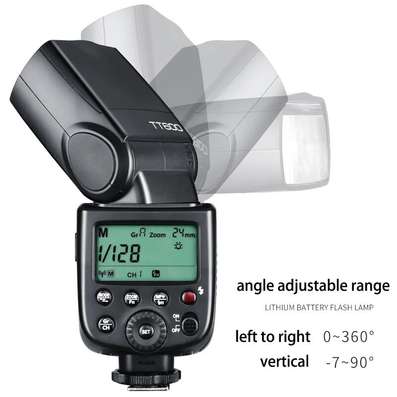 -Принимает Godox беспроводной x-системы, со встроенной 2,4G беспроводной передачи, может использоваться с Godox AD360II-C/AD360II-N, TT685C/TT685N, X1T-C/X1T-N беспроводной системы управления. -Встроенная беспроводная передача 2,4G с функциями «все в одном» и дальнейшей передачей 100 метров, чтобы предложить Вам стабильный выход и креативный светильник. -Улучшенная производительность: больше времени вспышки, approx.230 мигает полной мощностью (с использованием аккумуляторов Ni-MH 2500mA), обеспечивает достаточно времени вспышки для вашей съемки. -Более быстрое время рециркуляции: 0,1-2,6 s время рециркуляции при полной мощности (с использованием eneloop ni-mh батарей Panasonics). -Даже светильник освещения: GN60 (м ISO 100) Высокое Ведущее число фотовспышки, 1/300s - 1/20000s короткие длительностью вспышки, 5600 ± 200K стабильной цветовой температурой. -ЖК-панель большого размера обеспечивает четкую и удобную работу. -При использовании с беспроводным триггером вспышки X1 TTL (продается отдельно), может удаленно запускать вспышку TT600 и управлять ручным выходом, предлагая лучший пользовательский опыт. -Высокоскоростная синхронизация (HSS): может осуществлять высокоскоростную синхронизацию при использовании с триггером Godox Cell-II или беспроводным триггером X1C/X1N TTL (продается отдельно), максимальная скорость может достигать 1/8000s (зависит от камер). Особенно удобно при использовании диафрагмы для заполнения вспышки на портрете. Обратите внимание: TT600 не может реализовать HSS при использовании на камере горячий башмак. -Поддержка режимов M /S1/ S2, автоматическое/Ручное Масштабирование 20-200 м. -С настраиваемыми настройками функций C.Fn. -С функцией автоматической защиты от перегрева вспышки.
