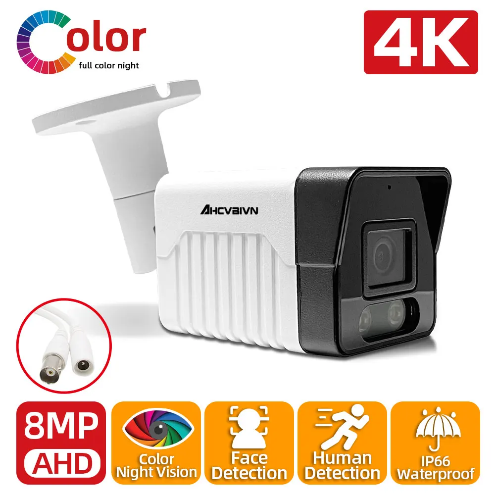 Камера видеонаблюдения AHCVBIVN Super HD 8,0 МП, цветная Водонепроницаемая камера безопасности с разрешением 4 к, умная камера наблюдения с функцией распознавания лица