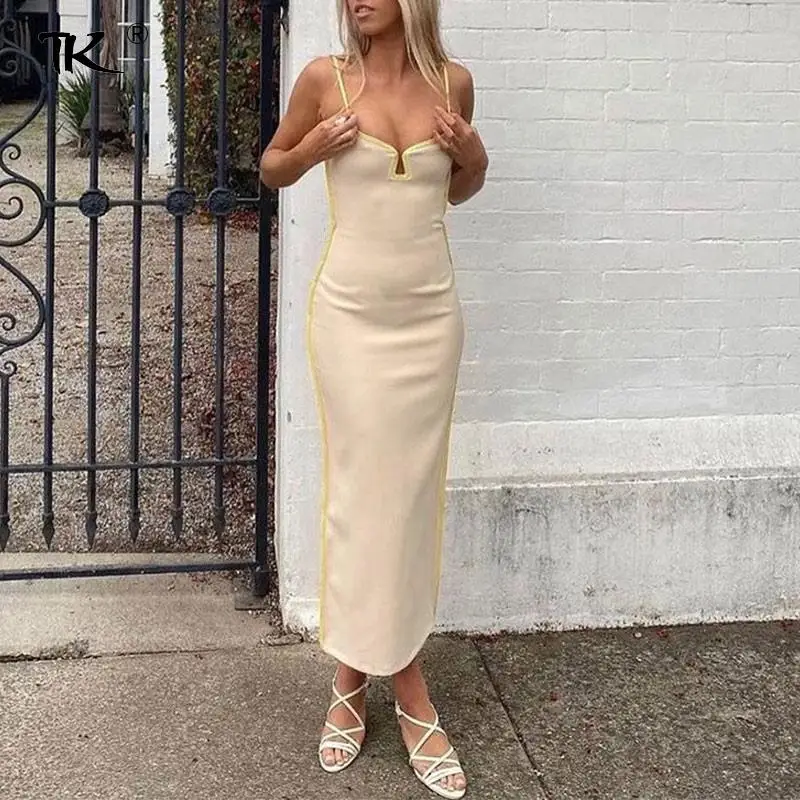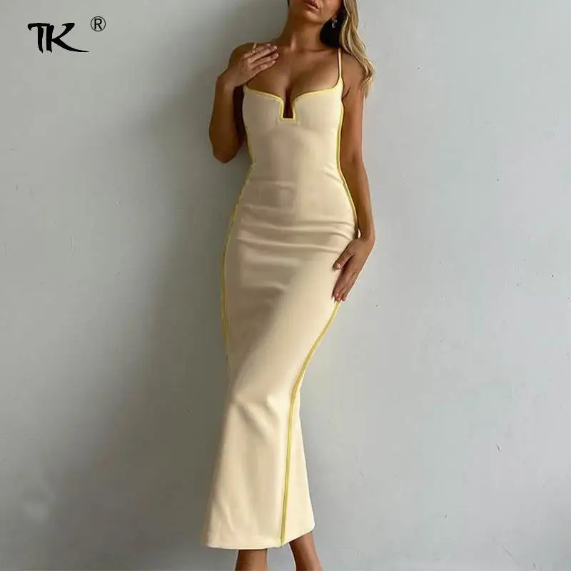 Элегантное женское летнее платье 2021, платье с V-образным вырезом и открытой спиной, Клубное сексуальное длинное платье, женские облегающие Вечерние Платья-макси на бретелях для женщин