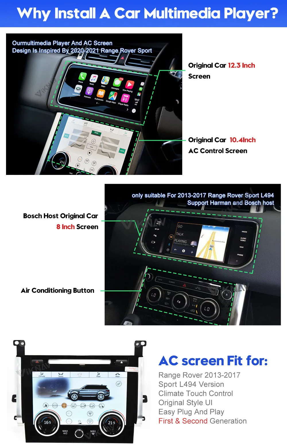 For Land Rover Range Rover Sport L494 Car Radio AC Panel LCD Climate Touch Screen Multimedia Player Gps Naviga Head Unit Carplay