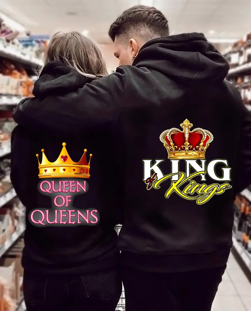 2022 модная спортивная одежда для влюбленных пар с принтом король короля королевы одежда с капюшоном толстовки винтажные толстовки женские пары