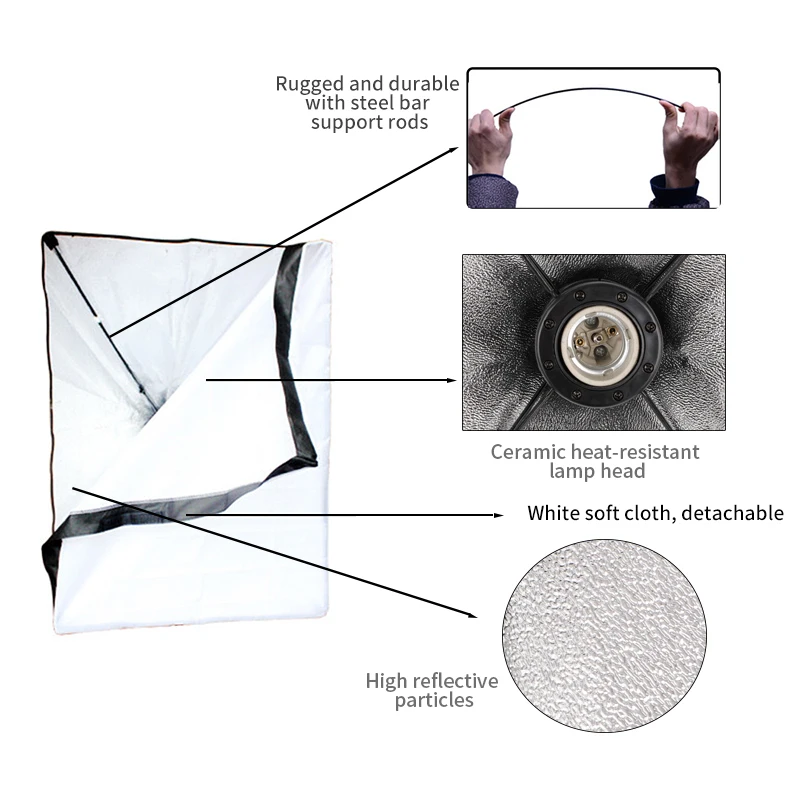 Это идеальный набор софтбоксов для цифрового фото-и видеосъемки. Лампа для фотографирования, Цоколь E27 подходит для большинства осветительных приборов.Четыре вида адаптера питания: штепсельная вилка европейского стандарта, штепсельная вилка американского стандарта, штепсельная вилка британского стандарта, штепсельная вилка австралийского стандарта.50x70 см, узкие Туфли-фонаря ламповый патрон софтбокс: белые складные мягкой ткани для удаления остатков крема, высокое качество Светоотражающие частицы. Серебристый внутренняя уход за кожей лица, чтобы свести к минимуму светильник потери и максимизировать светильник распространения. Безопасное и нетоксичное полиэфирное волокно, 4 гибких шатуна.Светильник: высота в сложенном виде 27 дюймов (68 см), рабочая высота 79 дюймов (190 см), высокое качество, стабильный и прочный, прост в установке и использованииОксфордская сумка: может содержать все детали продукта, легко носить с собой. (Только покупайте лампы, отправляйте оксфордскую сумку)