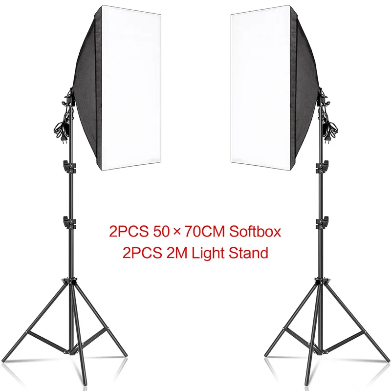 Софтбокс для фотосъемки 50x70 см светильник непрерывного освещения система непрерывного освещения с 2 м штативом 5500K лампы для фотосъемки оборудование для фотостудии
