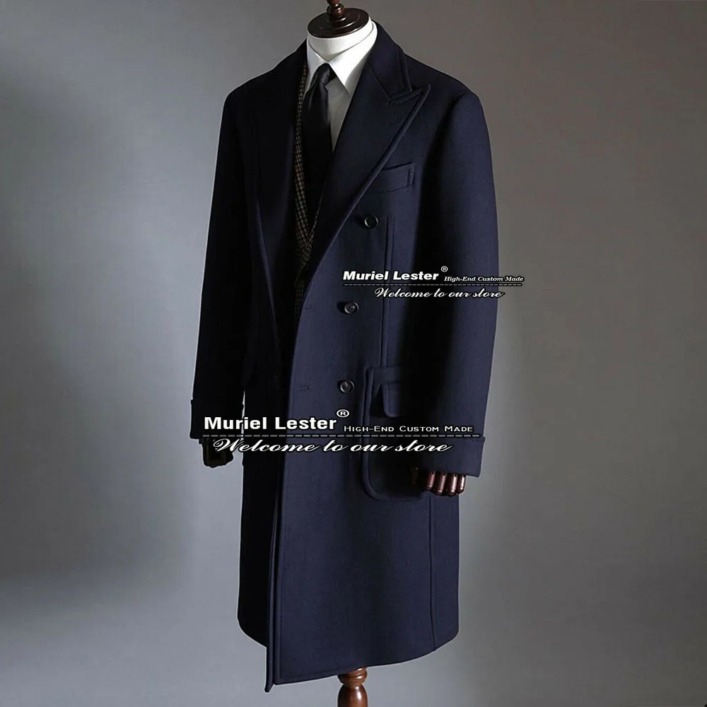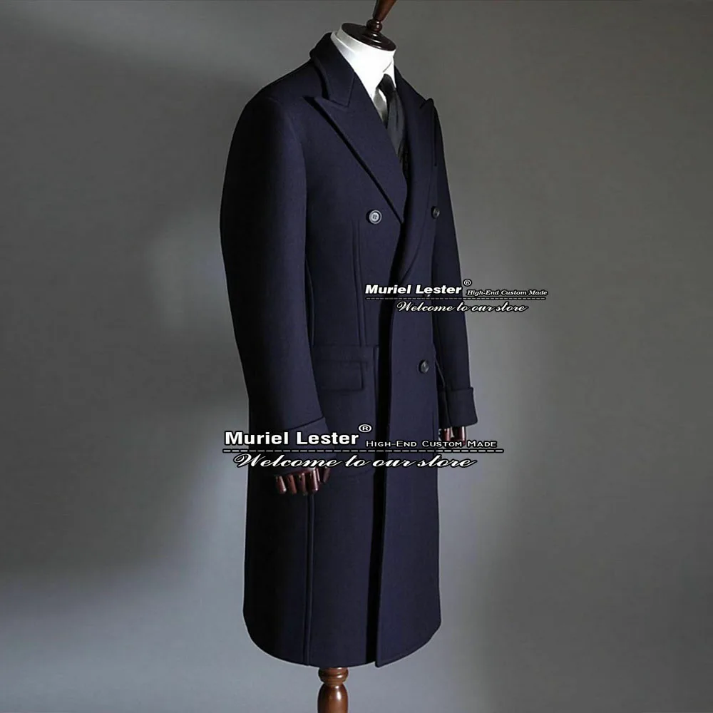 Мужской твидовый пиджак, темно-синий пиджак из смешанной шерсти, двубортный длинный приталенный пиджак для свадьбы, модель 2022 на зиму