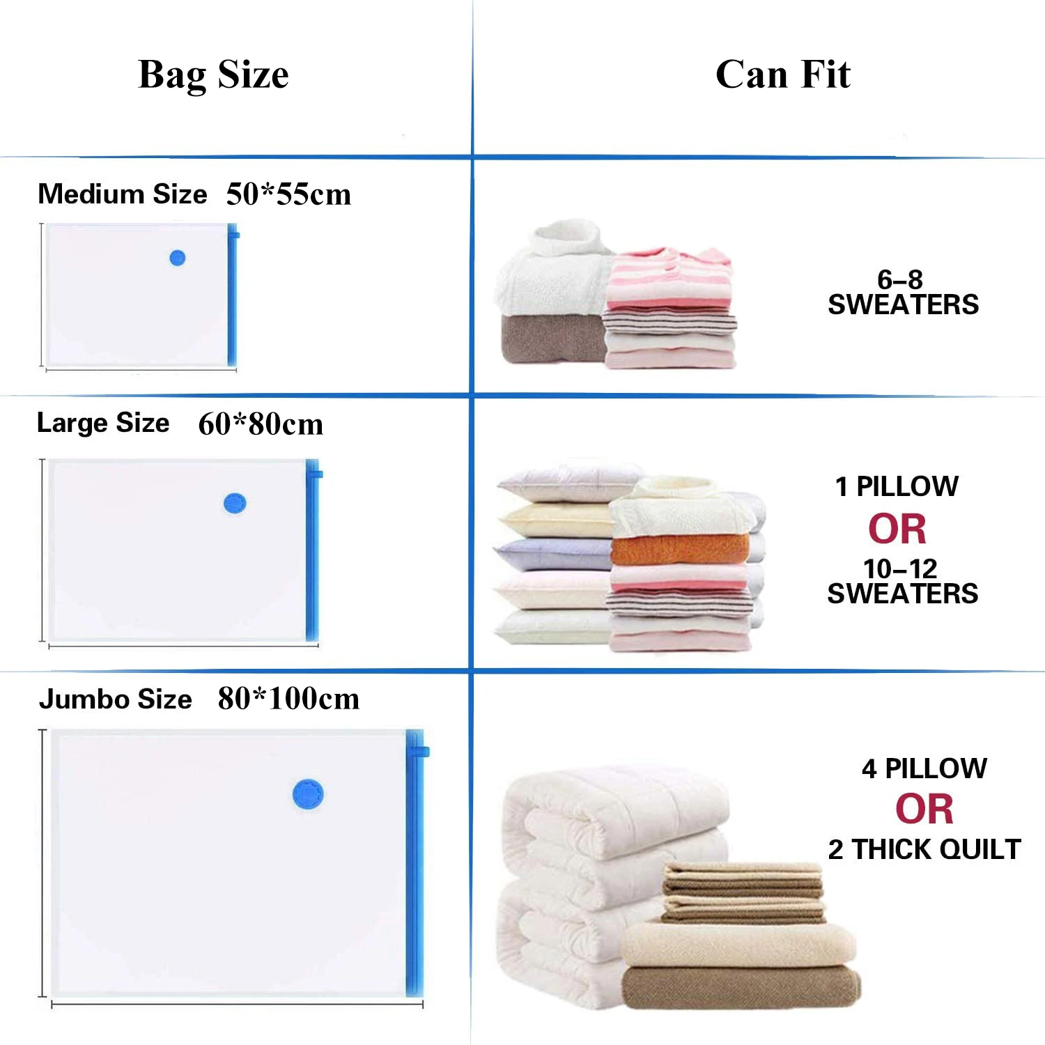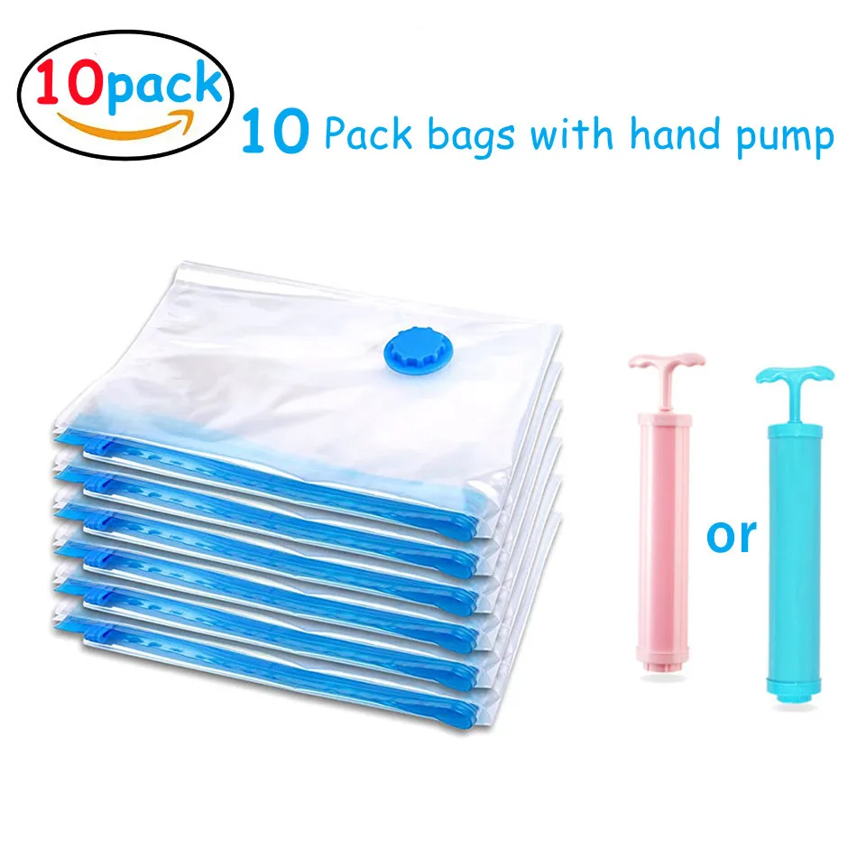 510 шт. прочный вакуумный мешок для хранения одежды, подушки, постельного белья, одеяла, Сэкономьте больше места, компрессионный дорожный ручной насос, герметичный пакет на молнии