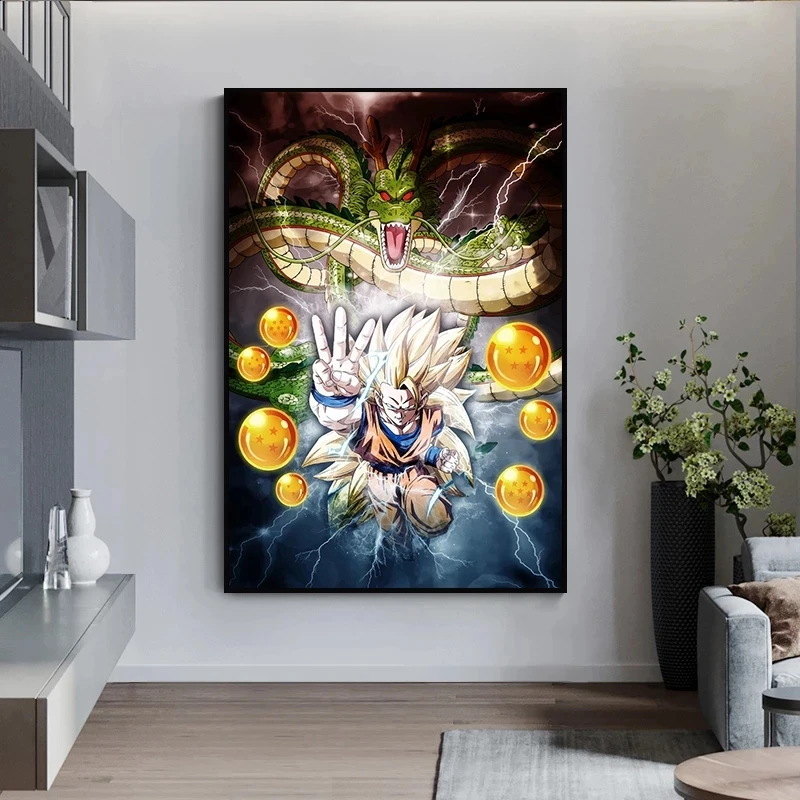 Современное настенное искусство Дракон мяч плакат Гоку японское ани...