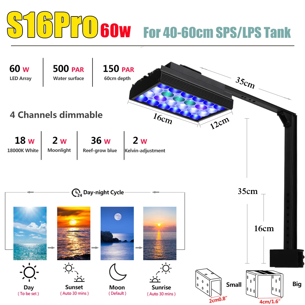 У меня уде есть один светильник s16 pro reef с пультом. Очень довольна им!Решила расширяться и тут увидела акцию на s16pro reef и s16 reef. Цена была просто сказочная за 5862р аж два светильника! Продавец надежный. официальный. Ну раз так продают... ммм.. значит надо срочно брать! оплатила 23.02. жду-жду... не высылают.. переживаю. в итоге зашла в переписку, а оказывается там два письма. мол это была ошибка,цены указаны не верно. откажитесь от заказа. а мне 6.03уже живность привезут и как я без света?! стали переписываться, обсудили разные варианты. а из-за курса цена выросла! В итоге 2.03. мне уже прислали 1 светильник s16pro, iml доставка на дом, на простом кранштейне, с пультом. Спасибо менеджеру. Я очень довольна такому исходу. Иначе бы пришлось отказаться и ждать возврат на карту 20 дней по договору. а как все знают visa, master kart, svift привети потом покупать по новому курсу.