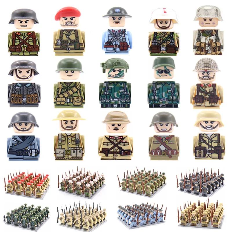 Детские игрушки 10 шт.лот WW2 военные фигурки Soveit строительные б...