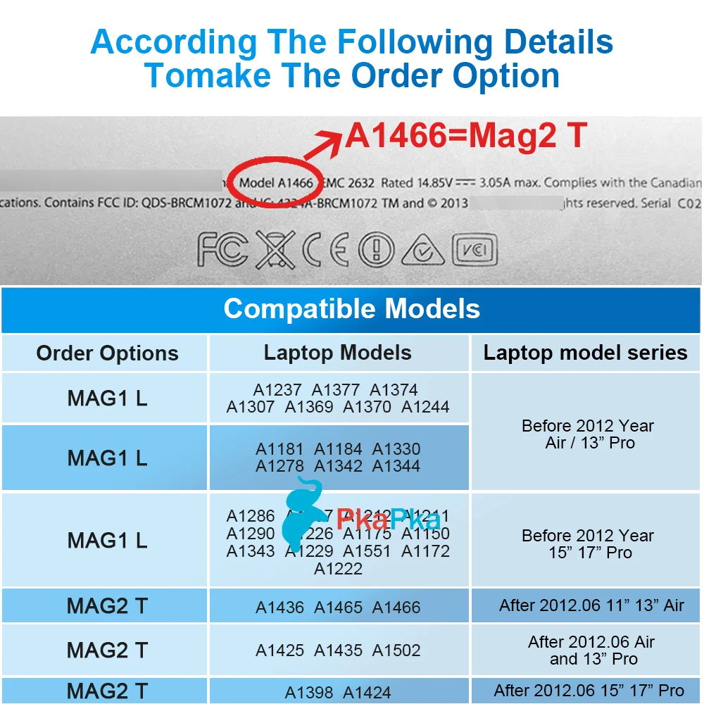 Описание Состояние: новое Качество: класс А QC: проверка 1 на 1 перед отправкой Гарантия: 12 месяцев Совместимость: для Macbook кабель для ремонта зарядного устройства Посылка включает в себя: 1 шт. * кабель для ремонта Расширение: 60 Вт, 45 Вт, 85 Вт совместимы, мы отправим 60 Вт или 85 Вт, пожалуйста, проверьте детали модели адаптера питания ноутбука перед заказом. Mag1 L = для macbook до середины 2012 года. (A1181,A1342,A1278,A1286,A1297,A1370,A1369) Mag2 T = для моделей macbook в середине 2012 года (A1465,A1466,A1425,A1398,A1425,A1502)