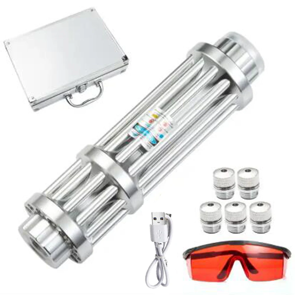 Мощная лазерная указка, военный синий лазер с Usb, 445нм, 10000 м, Фокусируемый Лазерный фонарь, указатели, ожоги спичекфейерверков