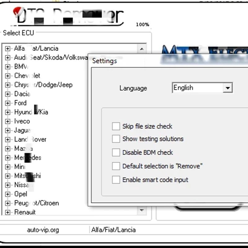Версии программного обеспеченияDTC remover V1.8.5.0