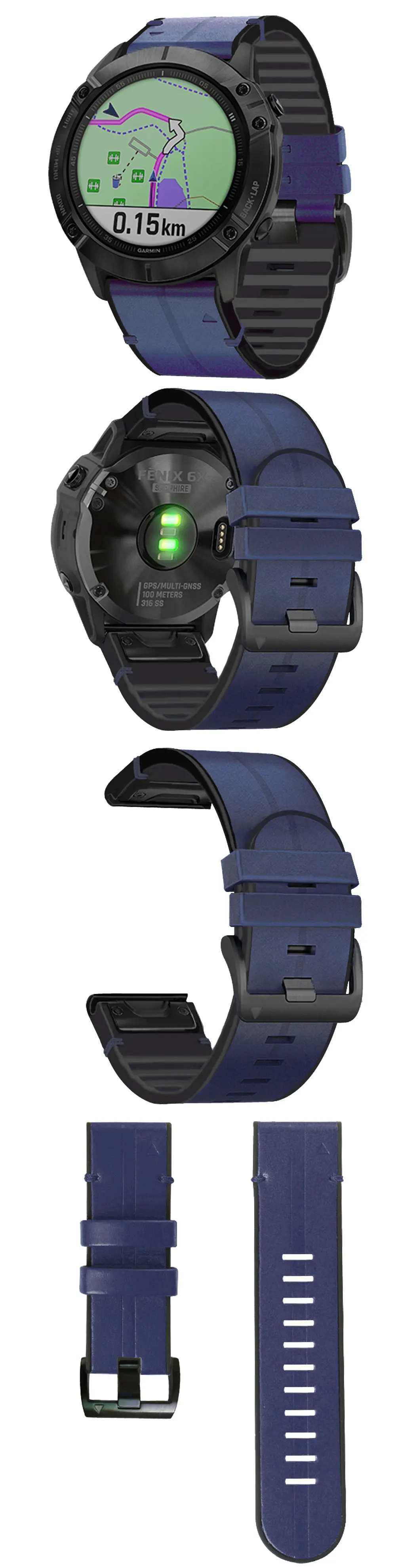 Кожаный силиконовый ремешок для наручных часов Garmin Fenix 55X Plu...