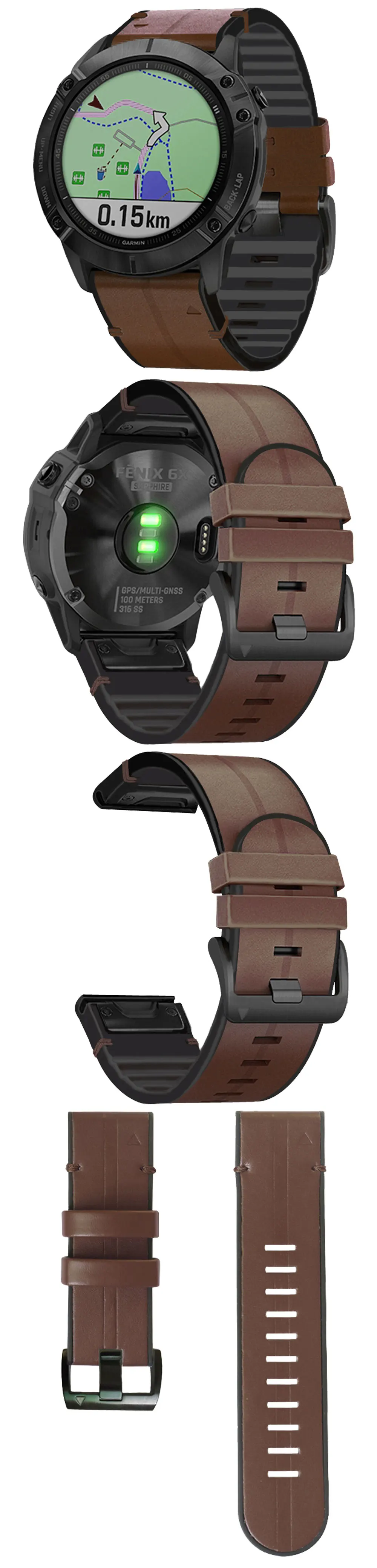 Кожаный ремешок для часов Garmin Fenix 5 Plus 6 Pro 5X 6X, Быстросо...