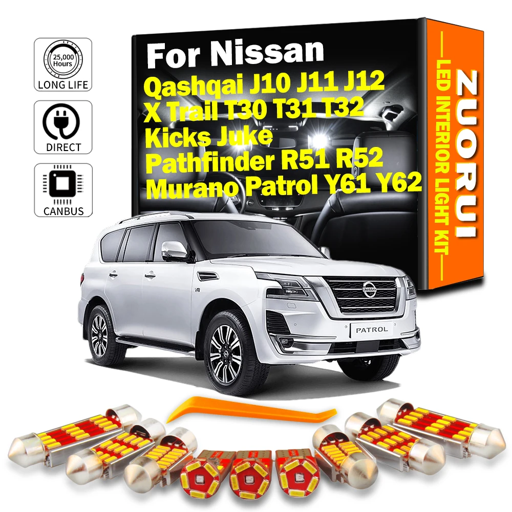 ZUORUI Canbus Светодиодная лампа для освещения салона автомобиля Комплект для Nissan Qashqai J10 J11 J12 X Trail T30 T31 T32 Kicks Juke Pathfinder R51 R52 Murano Patrol Y61 Y62 светодиодные лампы без ошибок
