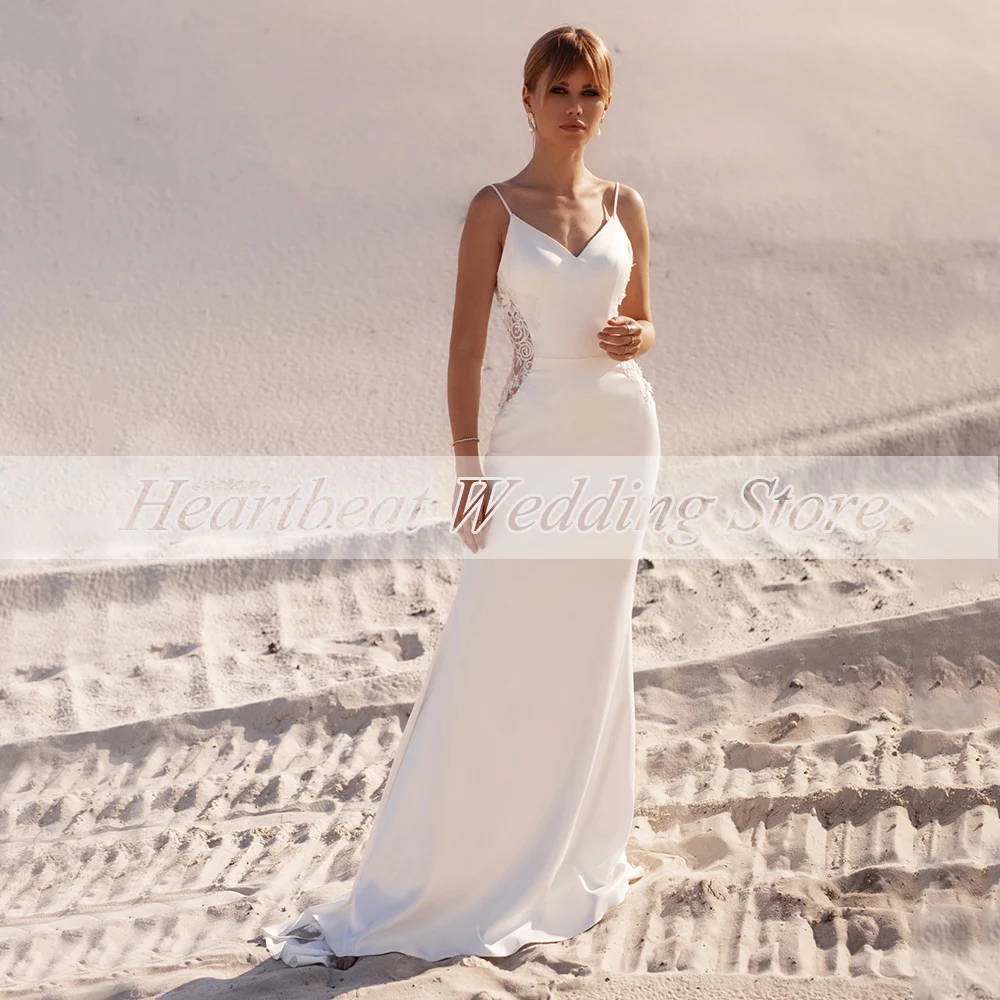 Простое белое свадебное платье для женщин с кружевом на бретелях-спагетти в пол гражданское свадебное платье женское платье