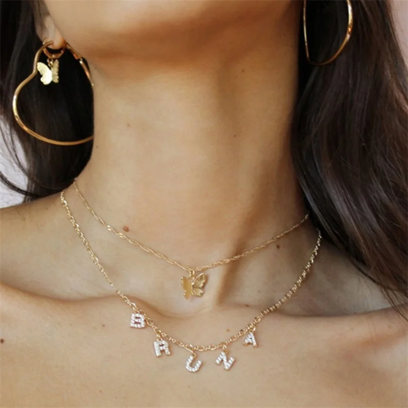 Индивидуальное модное Двухслойное ожерелье с именем для женщин, пер...