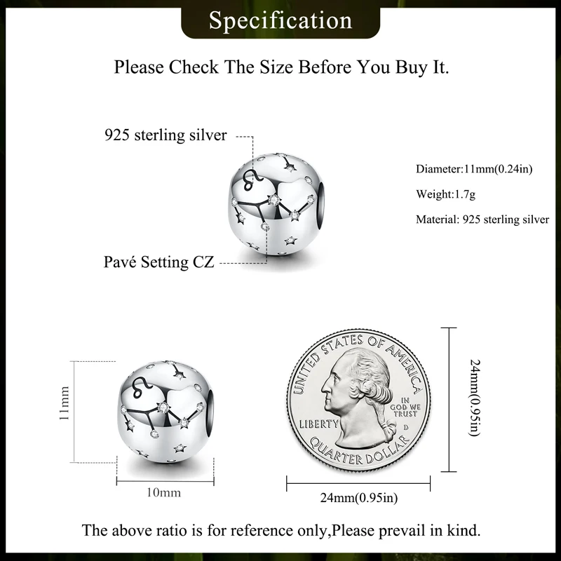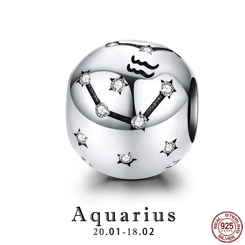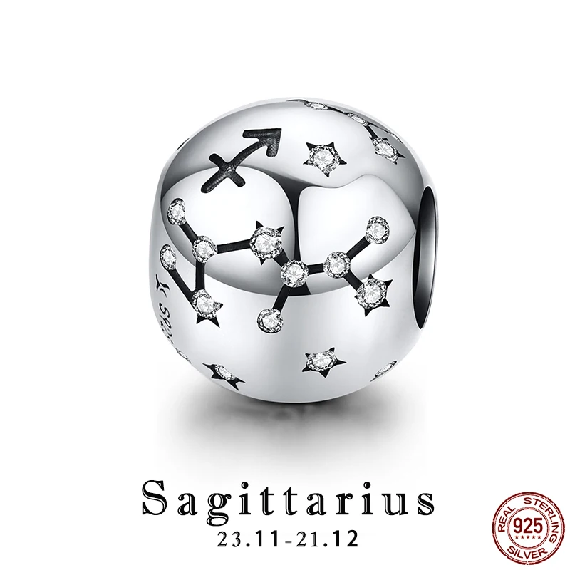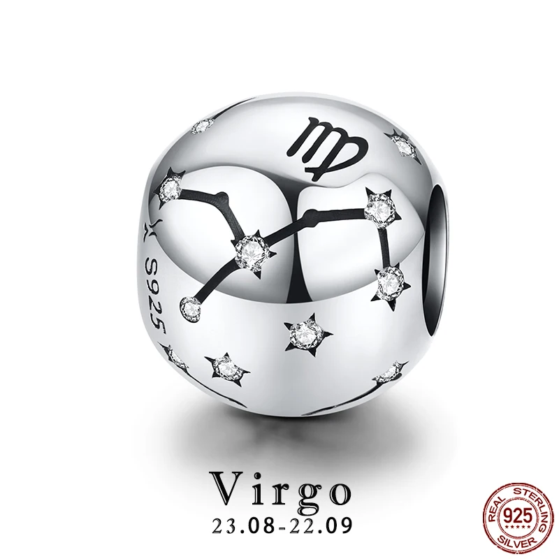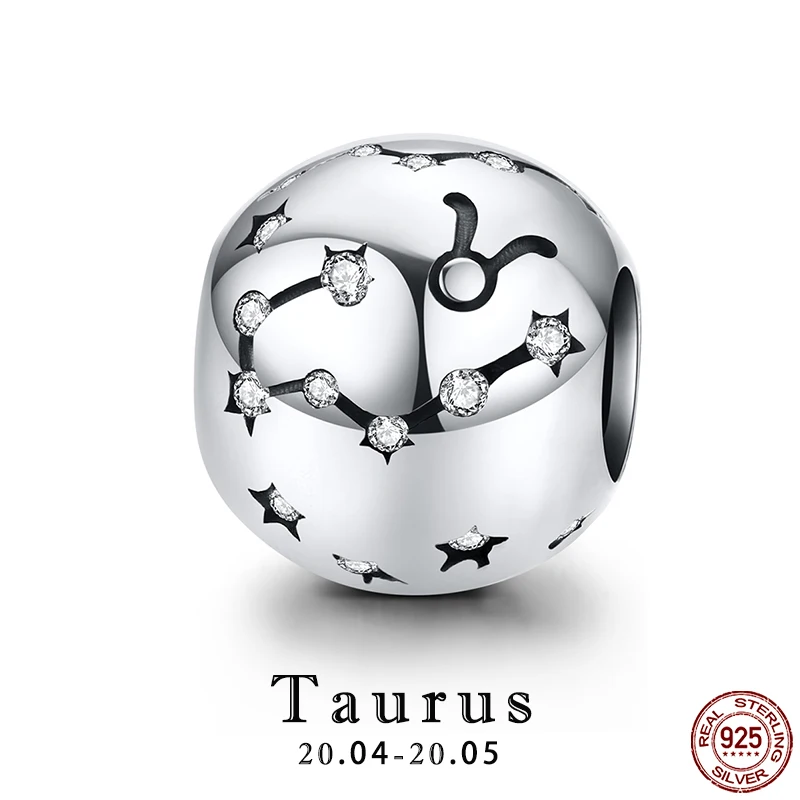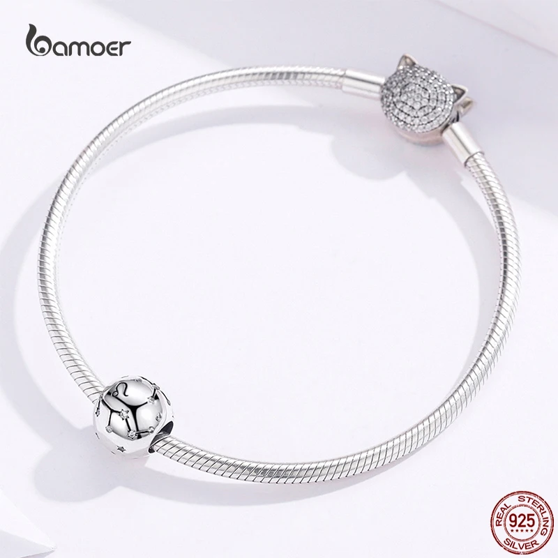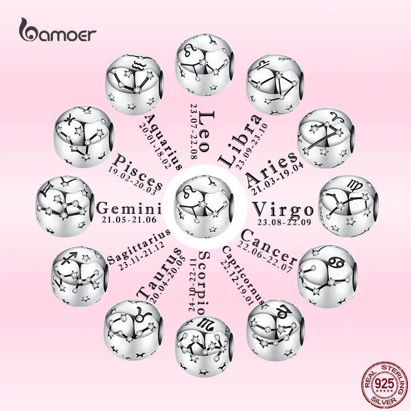 Bamoer, 100% 925 пробы, серебро, Винтаж, 12 созвездий, Leo Aries, Зодиак, бусы, амулеты, подходят для оригинальных браслетов DIY, ожерелья