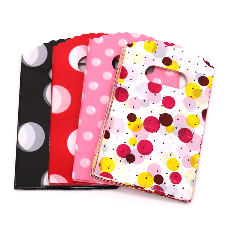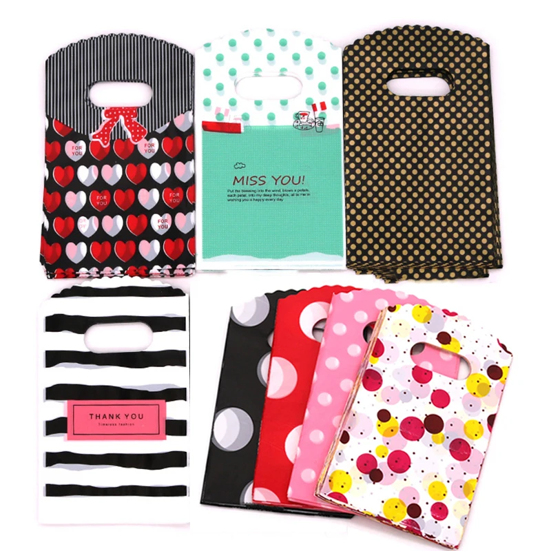 50 шт./лот, небольшой пластиковый пакет разных стилей, 9x15 см, Подарочная сумка из бутика с ручкой, серьги, ожерелья, браслеты, упаковка для ювелирных изделий