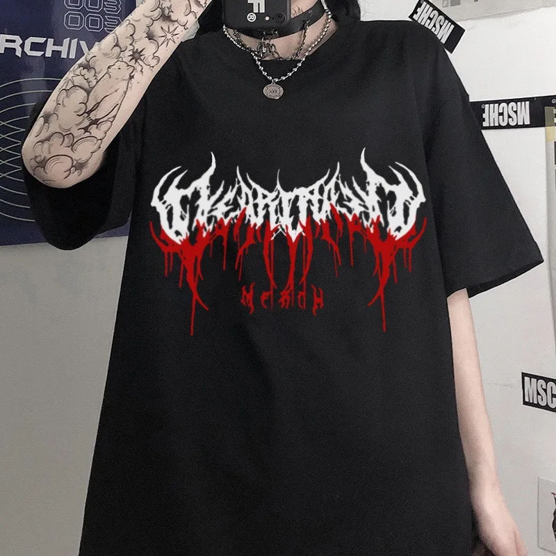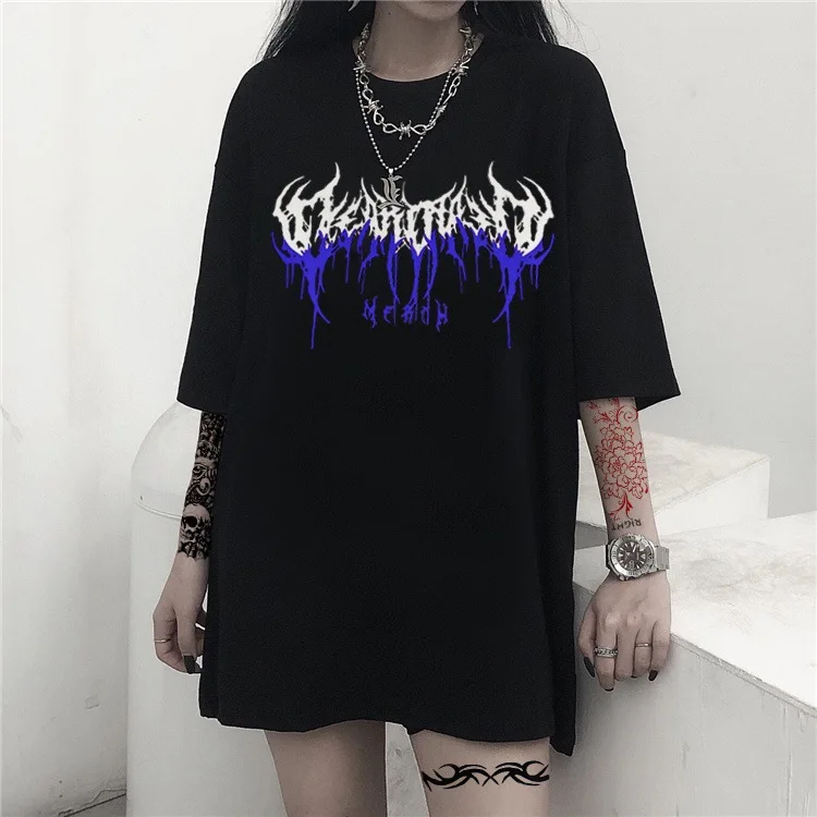Футболка женская оверсайз с графическим принтом, готическая Черная ...