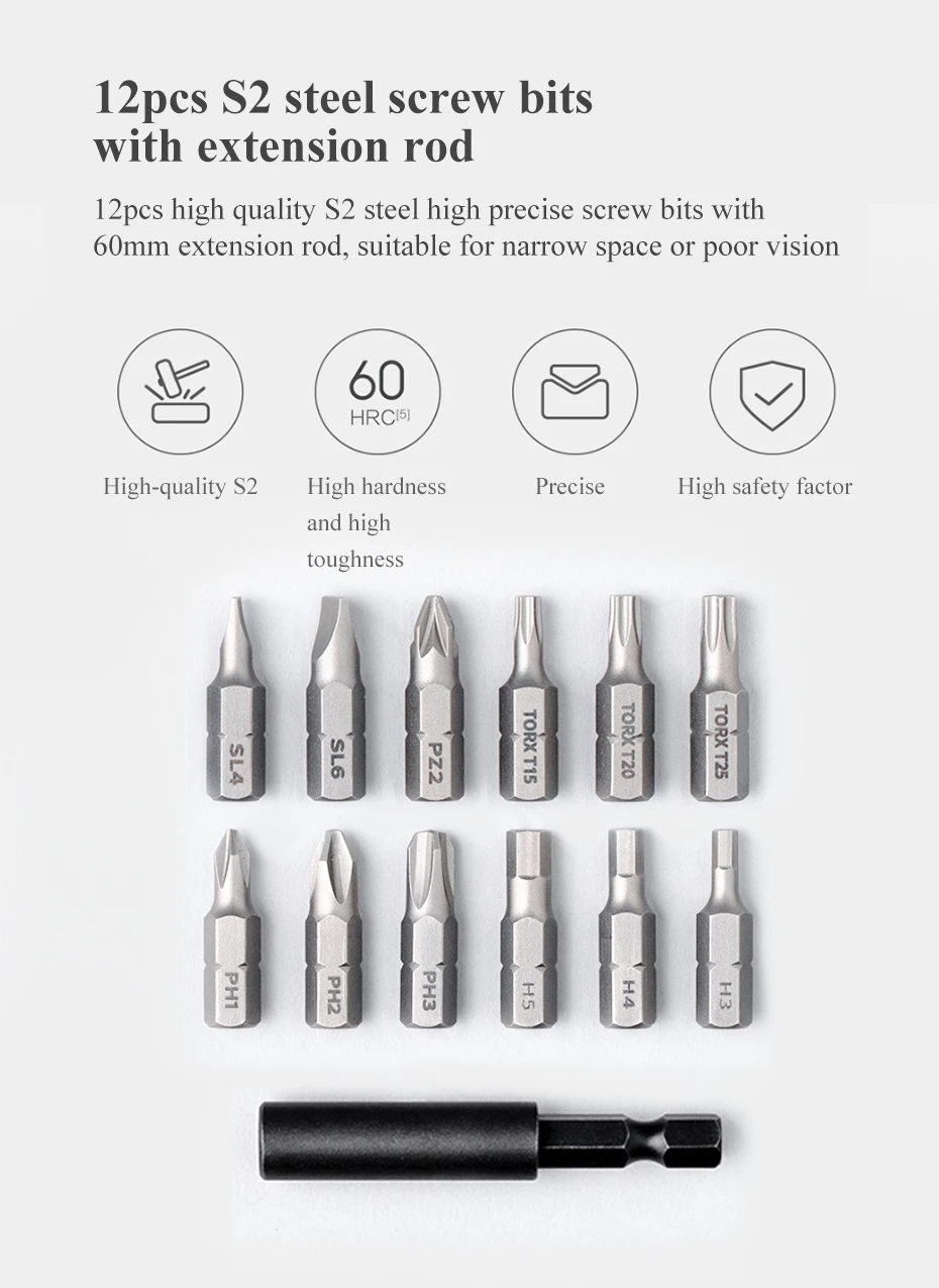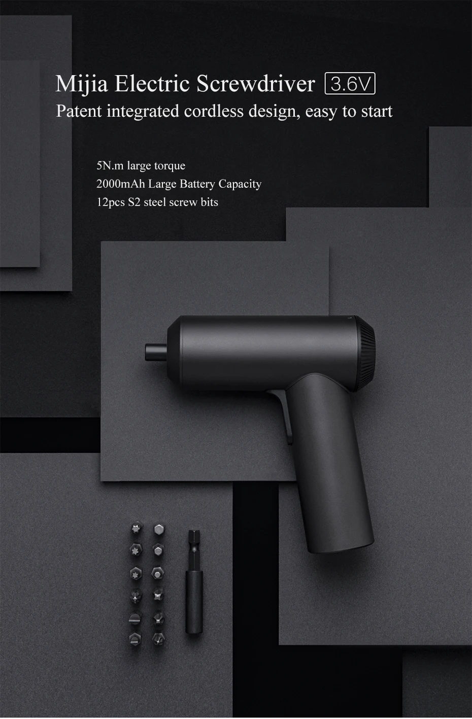 Беспроводные электрические отвертки XIAOMI Mijia, Новое поступление, 2019, с новым дизайном, 12 стальных винтовых бит S2 и одна отвертка, драйверы Mijia, выиграли премию iF design AWARD, 2019 если награда за промышленный немецкий дизайн проста в эксплуатации, долговечна и портативна. 5N.m максимальный крутящий момент, 2000mAh большой литий-ионный аккумулятор, он может быть широко использован в большинстве бытовых электрических приборов.