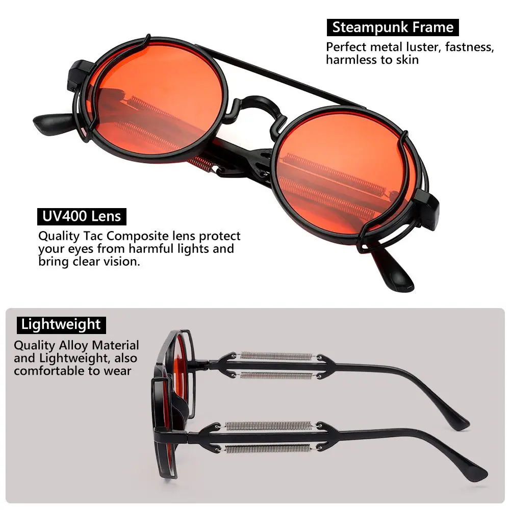 Модные круглые солнцезащитные очки в готическом стиле панк с защитой UV400, солнцезащитные очки в стиле стимпанк, мужские очки, солнцезащитные очки