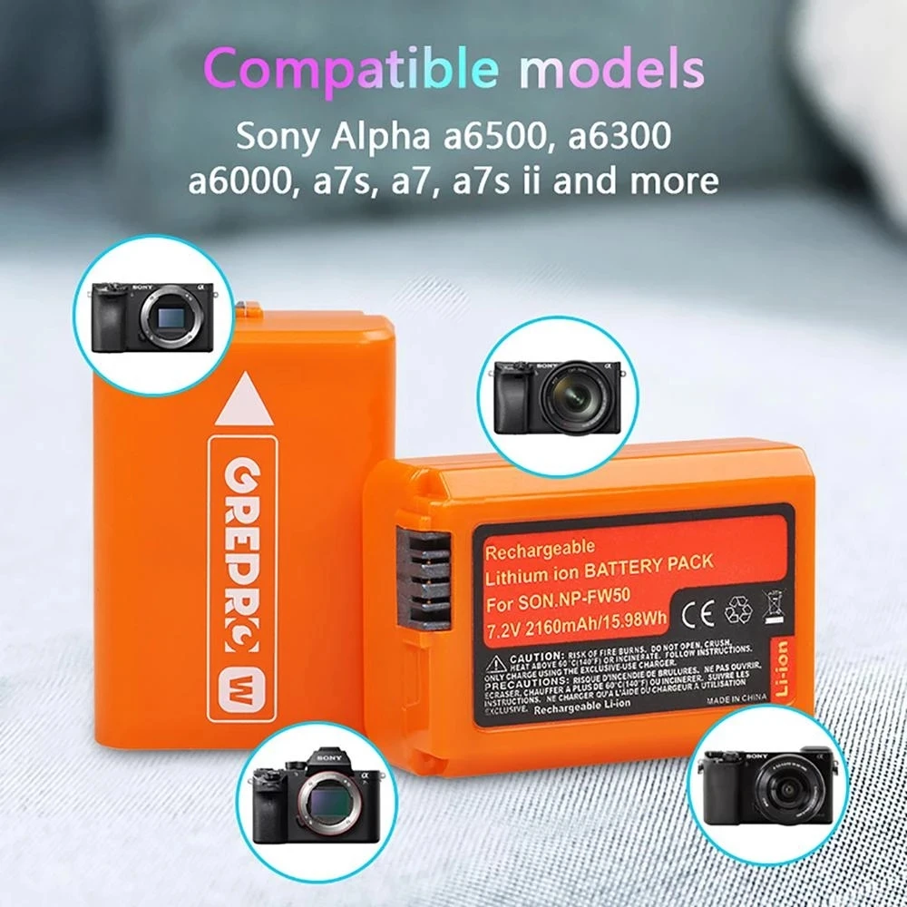 Аккумулятор и зарядное устройство USB для Sony Alpha a6500 a6300 a6000 a5000 a3000 NP-FW50 A7 A7II A7RII A7SII A7S A7S2 A7R A7R