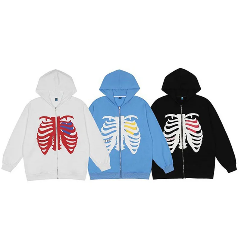 Толстовка с капюшоном и принтом скелета для мужчин и женщин, куртка с капюшоном на молнии с длинным рукавом в стиле аниме, свободная уличная одежда в стиле K-POP, большие размеры