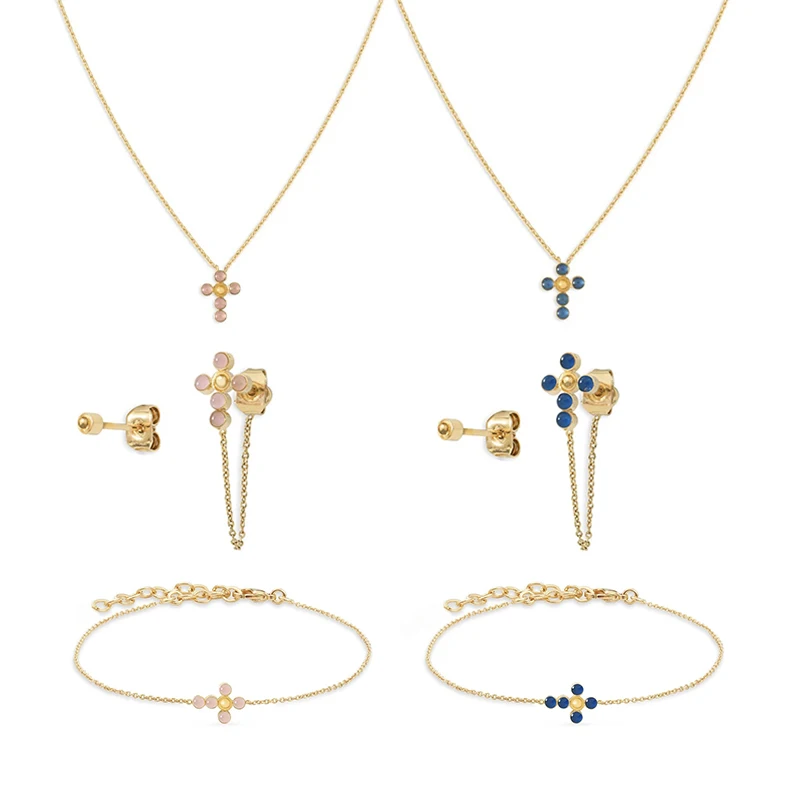 【Тип изделия 】: синий розовый крест серии ювелирных изделий серьги ожерелье браслет
