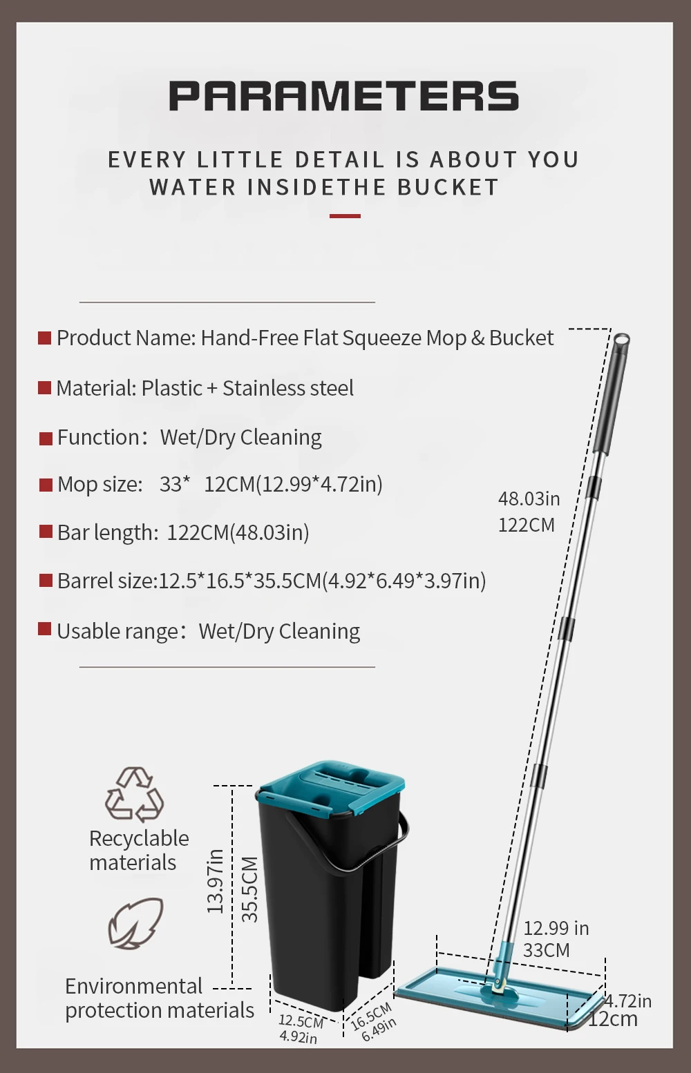 Швабра с ведром для мытья пола, плоская Швабра из нержавеющей стали...
