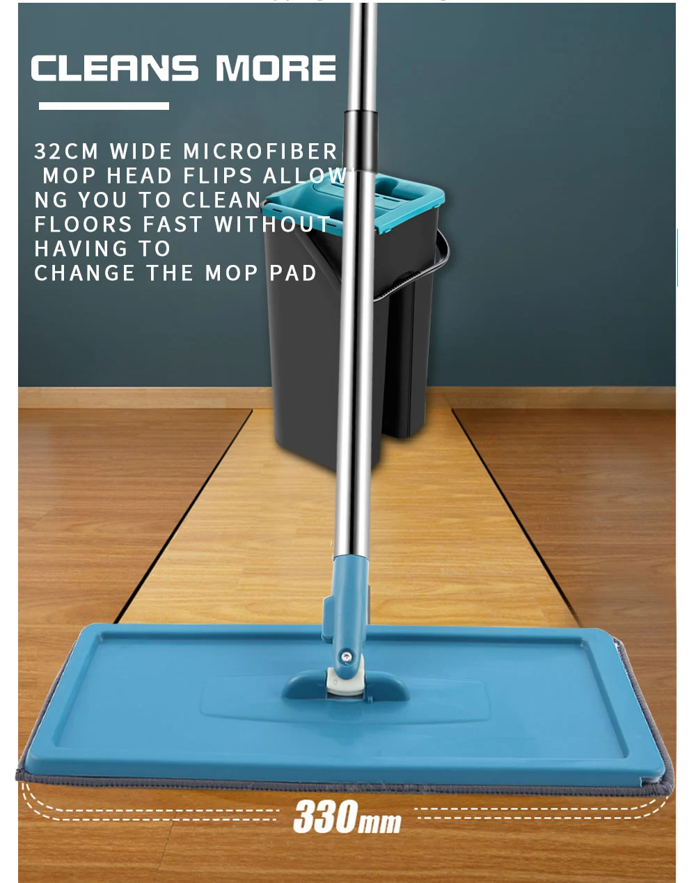 Плоская швабра с ведром, Швабра для мытья пола без использования ру...