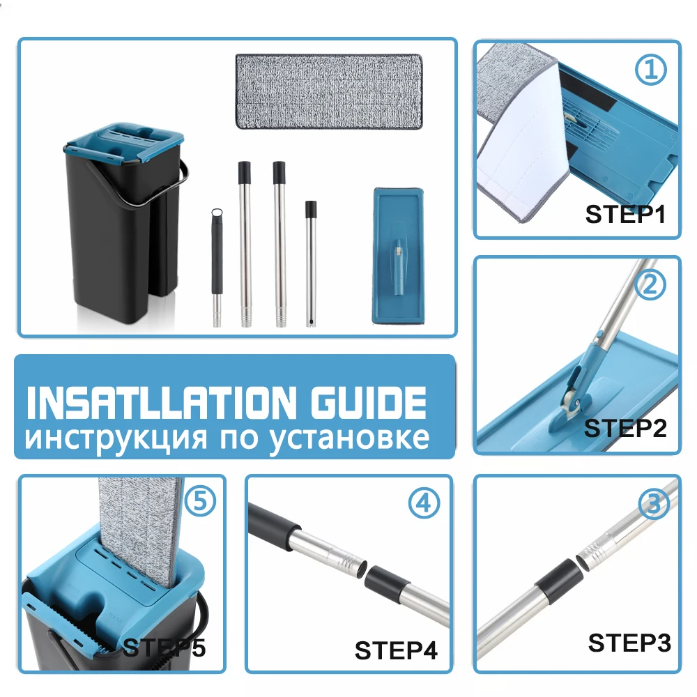 Плоская швабра с ведром Очистка с вращением на 360 градусов Швабра ...