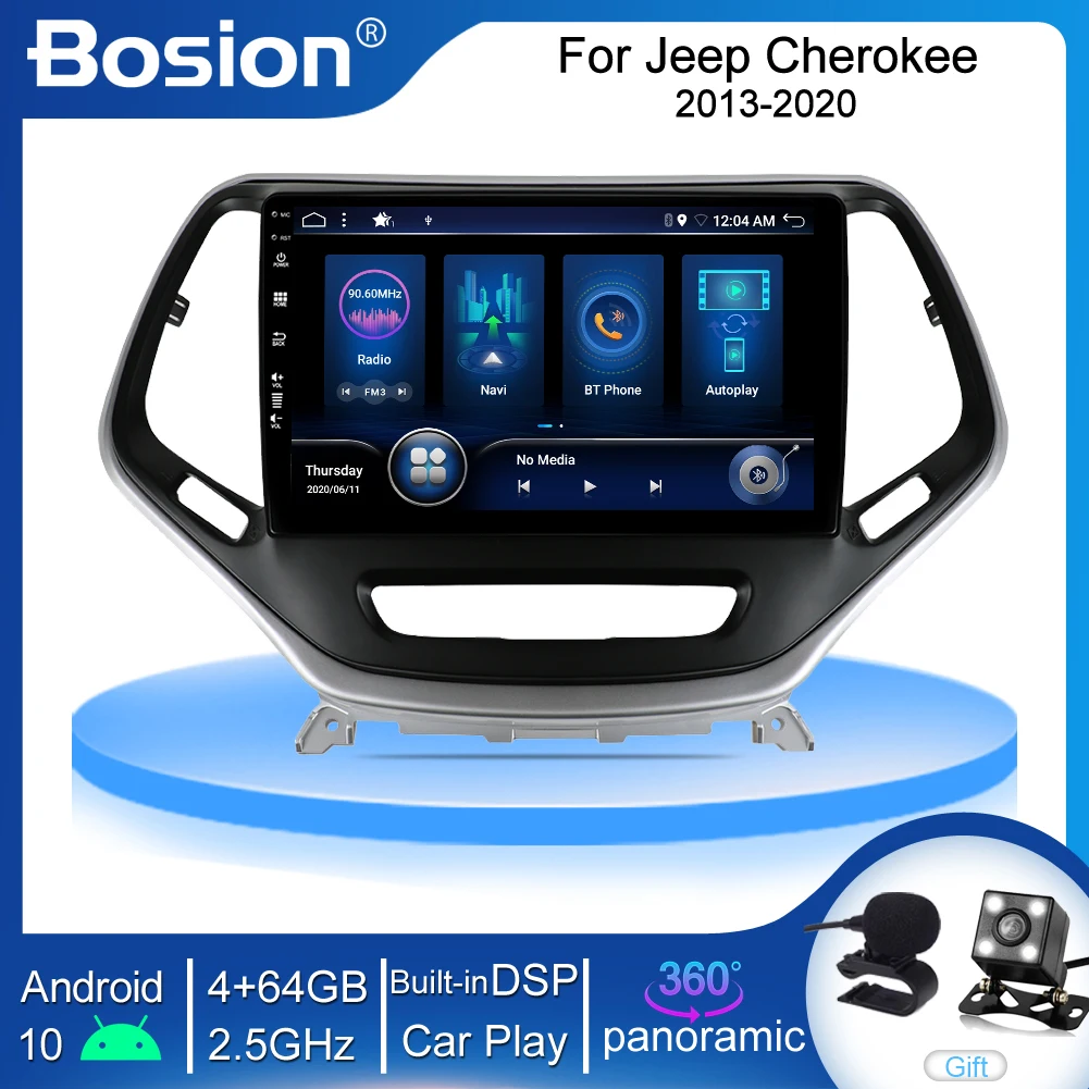 Автомагнитола Bosion, 2 din, Android 10, 4 Гб + 64 ГБ, DSP Carplay для Jeep Cherokee 5 KL 2014-2018, мультимедийный видеоплеер, GPS-навигация, BT