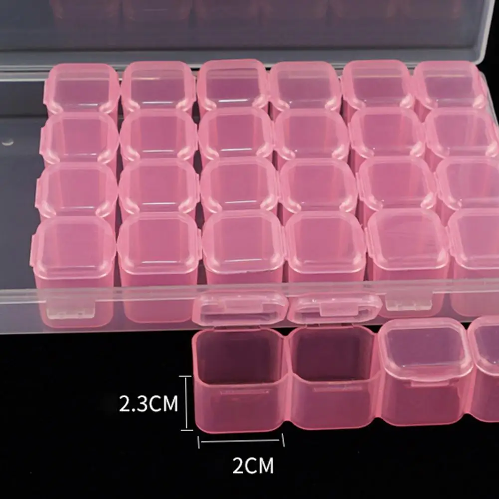 Особенности: Независимый дизайн ящика для хранения. Легкий и компактный, портативный и практичный. Применение: используется для блесток, кристального песка, колец или других безделушек, дизайна ногтей, косметики, таблеток. Характеристики: Цвет: розовый/розово-красный/фиолетовый/Разноцветный Материал: полипропилен Спецификация: 28 сеток Каждая клетка Размер: 2,3*2*2 см/0,91*0,79*0,79" Полный размер коробки: 17,3*10,5*2,5 см/6,82*4,14*0,99" Примечания: 1. Из-за различных настроек монитора и светильник эффект, фактический цвет элемента может быть s светильник ly отличается от цвета, представленного на снимках. Спасибо! 2. Возможны отклонения в 1-3 см вследствие измерений вручную.