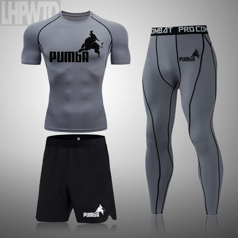 Брендовый мужской облегающий спортивный костюм для бега, тренажерного зала, фитнеса, бега, боя, тренировок, дышащая компрессионная футболка, мужские колготки, одежда